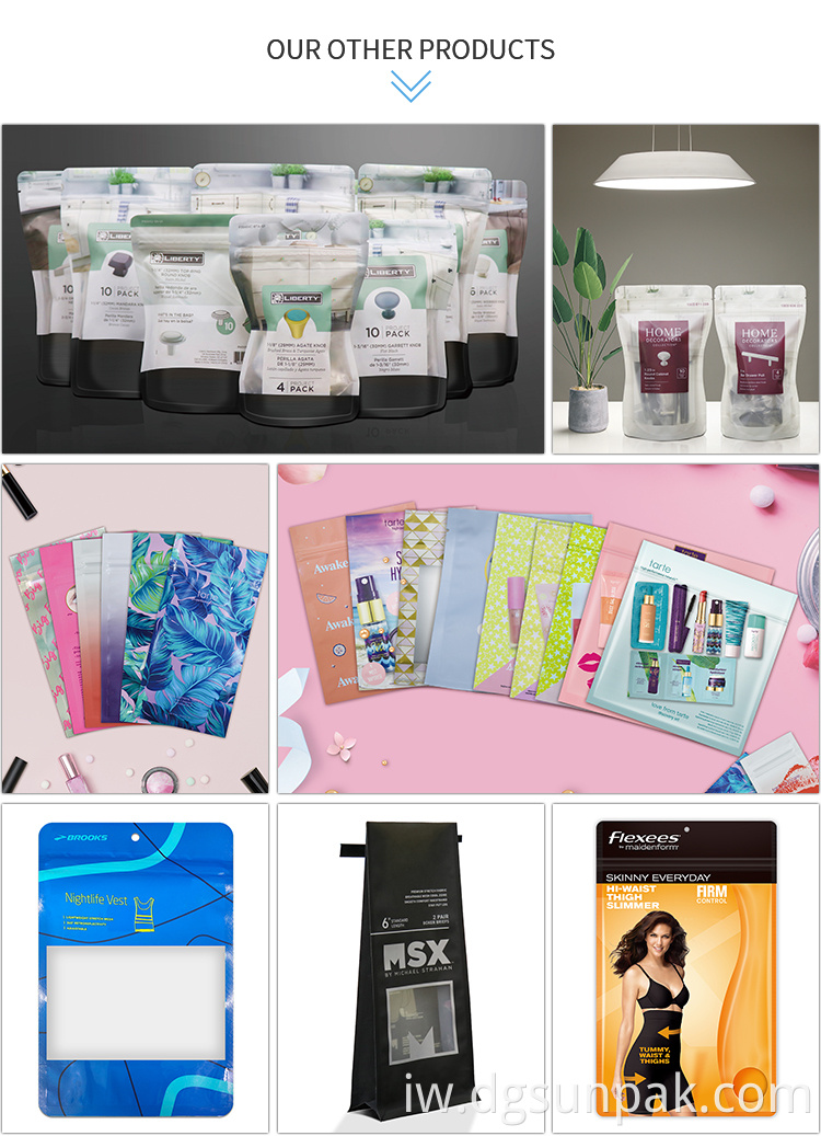 אנו מקבלים גדלים ועיצוב מותאמים אישית. כל שקיות האריזה שלנו מיוצרות בהתאמה אישית על בסיס יצירות האמנות וצורך האריזה שלך.